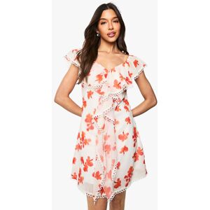 Chic Bardot neckline with feminine ruffle detail across the bust Lightweight chiffon fabric with all-over floral print Figure-flattering mini length showcasing legs Off-shoulder design with short flutter sleeves Fitted bodice with subtle A-line silhouette This flirtatious Bardot mini dress from Boohoo captures the essence of carefree summer style. The delicate chiffon fabric creates a soft, flowing movement while the ruffle detail adds a playful touch to the off-shoulder neckline. Perfect for garden parties or casual brunches, this dress can be styled with flat sandals and a woven bag for daytime gatherings. For a more polished look, pair with block-heeled mules and statement earrings. The versatile mini length works brilliantly for family barbecues or seaside strolls when layered with a denim jacket. This dress embodies the fun-loving Boohoo spirit - effortlessly stylish without trying too hard, making it an essential addition to your warm-weather wardrobe for those occasions when you want to feel both comfortable and confidently feminine.