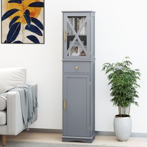 Keep your belongings safe and your space organized with our tall bathroom cabinet.This freestanding floor cabinet boasts a solid wooden construction and an anti-toppling device for enhanced stability and safety. It maximizes vertical space efficiently with its slim dimensions of 40 x 30 x 168 cm (L x W x H). Moreover, with 1 drawer, 2 doors and 3 adjustable shelves, this bathroom storage cabinet offers versatile and customizable storage solutions. This elegantly designed narrow linen tower features a tempered glass door and golden-colored handles, adding a modern touch to your bathroom, kitchen, living room and home office. Lark Manor Finish: Grey