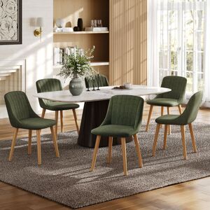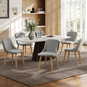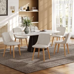 This side chair gives you another spot to sit in your living room or at your dining room table. Streamlined with a curved silhouette, it rests on four splayed legs with an wood finish for a mid-century modern look we love. It's made from solid beech, and the seat is wrapped in a Knitted cotton and linen fabric. Padded with sponge, this chair provides ample support as you enjoy your favorite beverage at any time of the day. Corrigan Studio Colour: White