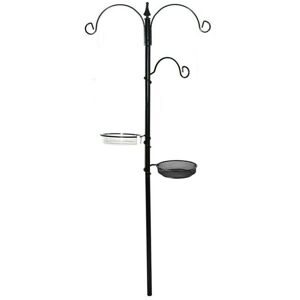 Garden Wild Bird Feeding Station Give the outdoor birds a treat with this feeding station! A practical and yet stylish way to keep those birds entertained and keep their bellys full. Standing tall at 190cm, this station has 3 brackets for you to hang feeders from, whether it be nuts, seeds or even fat balls. Lightweight and portable, you can move this station around the garden to get the benefits not just for the birds but for a better view of them bathing from your window. Manufactured from metal with a powder coated finish, this feeder will last for many years to come giving you and your winged friends a treat all year round. This would make a great gift for any bird lover this Christmas. ** PLEASE NOTE- Bird Feeders are NOT Included ** Dimensions: 190cm(H) x 50cm(D) approx. Includes: 3 Brackets, Water Dish & Mesh Feeder Tray