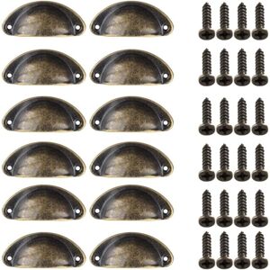 【High-Quality Material】The shell handles are made of high-quality material, sturdy, without welding marks, with the right thickness, elegant appearance, and durable for long-term use. They are high-quality shell handles with a solid structure and exquisite craftsmanship that will retain their metallic luster for a long time. 【Smooth Edge】The extremely good surface finish ensures a good texture, pleasant touch, and a sophisticated appearance, giving your furniture and rooms a beautiful, shiny appearance. The cabinet door handles are of high quality, which prevents sharp and rough edges from hurting your hands during use. 【Easy Installation】Drawer handle: approx. 81 x 35 mm (L x W); Hole length of the iron handle: approx. 65 mm. You will receive 12 door handles and 24 mounting screws. Ideal for replacing and installing drawers and door handles in your home and office. Our drawer handle highlights your special taste and is easy to maintain and install for daily use. 【Vintage Design】The
