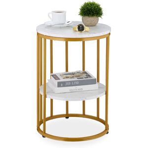 Serve drinks, put down a book, arrange flowers or showcase decorations - all this is possible on this stylish side table with 2 levels. As a coffee table in the living room, it stylishly complements your sofa. Next to the bed, it serves as a practical bedside table with space for a lamp and book. The two MDF shelves in a sophisticated marble look make the table a decorative eye-catcher in any room. Side Table in Detail - Overall dimensions H x D: approx. 56 x 40 cm - Top table top dimensions H x D: approx. 1.5 x 40 cm - Dimensions of lower table top H x D: approx. 1.5 x 36.5 cm - Distance between table tops: approx. 30 cm - Load capacity: approx. 25 kg - Weight: approx. 3.8 kg - Material: Iron, MDF - Various colours Decorative End Table in Marble Look - Stylish addition to the living room - Also practical as a bedside table or telephone table - Round table with 2 shelves creates storage space - For storing drinks, books, etc. - Modern design in marble look and metal frame