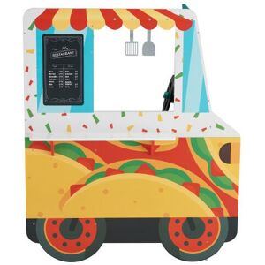 This play taco truck has bright, detailed illustrations on the exterior and interior for a truly interactive experience. Take orders at the window, complete with a menu board and counter. Inside, role play in a fully-stacked kitchen with griddle and oven, sink, microwave, and a refrigerator with an ice dispenser. Comes with ingredients to make a taco, three menu cards, and a pair of spatulas. The front of the truck includes a windshield and steering wheel that turns, too. Teamson Kids My Little Helper Play Taco Truck Playset with Accessories