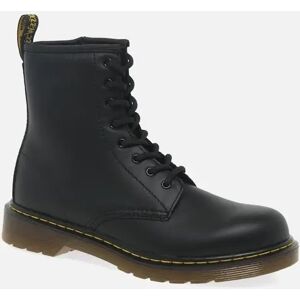 The Dr Martens Delaney Core black leather boots bring some straight up attitude to any day.In smooth black leathers, the Delaney boots boast the Doc’s classic DNA – yellow stitching and side grooves – making them the coolest kid on the playground. A smaller replica of the classic adult’s 8-eye silhouette, this pair features more flexible cemented soles to provide comfort for growing feet, and inside zips to make pulling them on and off a cinch. Finished with the classic branded heel loop, the Dr Martens Delaney black leather boots will be the highlight of their rebel style.