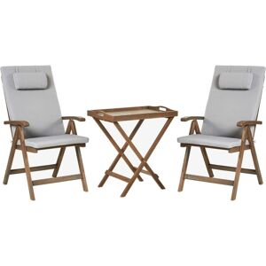 Garden Acacia Set with Seating Cushions. Transform your outdoor space with this exquisite garden dining set, featuring a 2-seater sofa, 2 armchairs, and a stylish table. Crafted from natural acacia wood, each piece showcases beautiful, visible wood grains, adding a touch of rustic elegance. The comfortable seating includes plush cushions with removable covers for easy maintenance. The table is designed with a convenient shelf underneath, perfect for storage. Enjoy alfresco dining and relaxation in the company of your loved ones with this charming and functional set. Details: Product Type: Sofa Set Style: Traditional General Color: Brown, White Shade: Off-White Material Type: Wood Main Material: Acacia Wood Additional Material: Steel Top Material: Wood Material Composition: 100% Polyester Finish: Oiled Seat Foam Density: 20 kg/m3 Seats Up To: 4 People Dimensions: 2 Seater Sofa Dimensions: 113x60x85 Armchair Dimensions: 62x63x85 Seat Thickness: 5 cm Seat Height: 44 cm Table Dimensions: