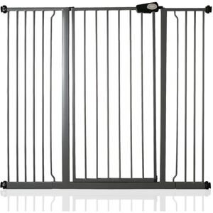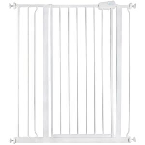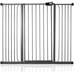 The Safetots Extra Tall Pressure Fit Gate has been designed to perform to highest standards of safety, incorporating a contemporary design to complement modern homes and modern day living. Unique features include the bespoke finish, the extra secure double locking mechanism and the additional height. Available in three colours, White, Matt Black or Slate Grey to suit all home interiors. On trend, this gate looks great, is simple to operate yet provides additional security for young families, pet owners or both. The Safetots Extra Tall Pressure Fit Gate is a pressure fitted safety gate, making it simple to install and remove without the requirement to drill any holes into the walls. The narrow size gate fits openings from 68.5cm - 75cm, and the standard size gate fits openings from 75cm to 82.6cm if used without extensions. The standard gate can be extended to a maximum width of 147.4cm with extensions. The gate has passed the EN1930:2011 Safety Standard, ensuring it is safe for