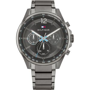 This Tommy Hilfiger Max Multi Dial Watch for Men is the perfect timepiece to wear or to gift. It's Grey 45 mm Round case combined with the comfortable Grey Stainless steel watch band will ensure you enjoy this stunning timepiece without any compromise. Operated by a high quality Quartz movement and water resistant to 5 bars, your watch will keep ticking. The classic colours will go great with any outfit . It enables you to easily spice up a normal outfit and add style to your life. -The watch has a calendar function: Day-Date, 24-hour Display, Tachymeter High quality 21 cm length and 21 mm width Grey Stainless steel strap with a Fold over with push button clasp Case diameter: 45 mm,case thickness: 10 mm, case colour: Grey and dial colour: Grey