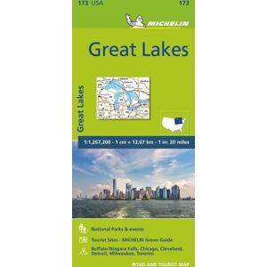 (Edition updated in 2022) Michelin USA Great Lakes Map 173 (scale: 1:1,267,000) part of Michelin's US regional map series with green covers zooms in close for comprehensive coverage of Wisconsin and Michigan, as well as areas of the other states surrounding the Great Lakes (Minnesota, Iowa, Illinois, Indiana, Ohio, Pennsylvania) and southern Ontario in Canada.It contains city maps for easy driving in Buffalo, Chicago, Cleveland, Detroit, Milwaukee, and Toronto.Michelin star-rated sights and a selection of not-to-be-missed annual events and festivals serve as inspiration for future road trips. Outdoor enthusiasts have their choice of national parks for scenery and activities: Cuyahoga Valley, Isle Royale and Voyageurs.The map includes a comprehensive index, a distance chart, and a multi-language legend in English and Spanish.Those traveling for business or pleasure, as well as locals traveling further afield, will appreciate Michelin's high standard of clear and accurate mapping and the additional information on parks, events and points of interest to make the journey more enjoyable. MICHELIN ZOOM MAPS are perfect to discover major tourist areas, with a high level of details in an easy to use format. They nicely complement our Michelin Guides and include:* Various leisure activities, such as water parks, tourist trains, horse racing, etc* Scenic routes and tourist sights crossed referenced with the famous Michelin's Green Guides* Camping sites information from Michelin's Camping Guides* Hotel information from the world famous MICHELIN Guides