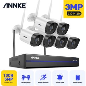 Key Features: NVR: ★ View, record, and play 2K FHD videos ★ Wi-Fi access, true plug-and-play system ★ Advanced H.264+ video compression ★ Instant motion detection email alerts ★ HDMI and VGA outputs for TV, monitor, and computer ★ Easy-to-use app for mobile monitoring ★ True continuous day and night protection ★ Night vision up to 100 feet with Smart IR ★ IP66 weatherproof indoor and outdoor cameras 2K 3MP Super HD Detail & Clarity Our advanced WiFi IP cameras adopt advanced 1/2.8’’ CMOS sensors to bring 2K Super HD (2304 X 1296) videos to you, ensuring 2K 3MP detailed live view and recording that leaves nothing to the imagination.3.6 mm wide-angle lens covers 70° field of view, so you can place this camera on your front/back door or yard, garage, garden, etc. for all-angle monitoring. AI Detection, Smarter Than Ever We add an advanced AI person detection algorithm to the Wi-Fi system, so you'll only be alerted when someone enters the monitoring area. Never be disturbed by swaying