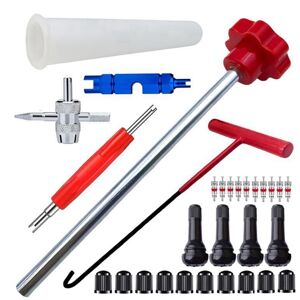 1. Meet All Needs: Meet multiple needs for wheels, maintenance is faster and more convenient with this tool set that contains a tapered positioning tube, push rod, T-hook, valve core wrench, and valve. 2. Effortless Valve Repair: The chamfered T-hook easily hooks out the old valve, while the thickened plum handle of the push rod increases control force. With improved grip friction during use and a grooved, ringed positioning tube on the outer side, this kit makes valve maintenance effortless and effective. 3. Multifunctional Use: Our valve stem tool kit provides a very practical and convenient solution. With its strong applicability, it can be used on various types of cars, motorcycles, and bicycles, meeting your needs effortlessly. Say goodbye to tire issues for good. 4. Long Term Use: Built to last with excellent materials, this valve stem tool kit makes repairs more dependable, helping you easily keep your vehicle in top shape. 5. Easy to Use: With only simple operating required,