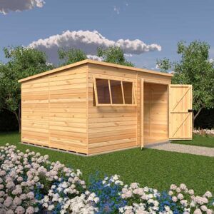 The Shire Ranger Premium Pent Shed range features tongue & groove cladding throughout, for superb strength and durability. Constructed using modular panels, the building can be built with the door and window panels in either the left or right hand position, on the front. This shed is approximately 12ft wide and 10ft deep, with a pent roof sloping to the rear. For light and ventilation, a single (3 pane) opening window is included as standard. For security, the double door has the premium benefits of a key lock, along with concealed piano hinges. Full instructions and fixings are provided as standard.