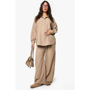 Stylish maternity trousers featuring a distinctive crinkle texture with vertical stripe pattern Wide-leg design offering maximum comfort and room to grow throughout pregnancy Elasticated waistband that sits comfortably over the bump for flexible support Relaxed fit with full-length legs for a contemporary silhouette Versatile design that pairs effortlessly with both casual and smart-casual tops These boohoo maternity trousers combine comfort with contemporary style, perfect for the fashion-forward mum-to-be. The distinctive crinkle fabric adds texture and interest to your maternity wardrobe, while the wide-leg cut ensures you'll feel unrestricted as your body changes. Style them as seen with an oversized matching striped shirt for a coordinated set that looks put-together yet feels wonderfully comfortable. For casual outings, pair with trainers and a simple tee, or dress them up with a fitted top and ballet flats for family gatherings. The adaptable design works brilliantly throughout all trimesters, making these trousers a wardrobe essential that will see you through your pregnancy journey in style. Their relaxed aesthetic perfectly balances the need for comfort with boohoo's signature trend-conscious approach.