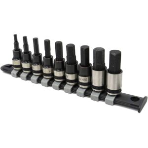 Sealey Premier Black Hex Key Socket Bit Set 3/8"Sq Drive 9pc Features: Professional heat treated Chrome Vanadium steel sockets. Fully polished black chrome finish with machined and lacquered surfaces. S2 Steel hex bits with a phosphate finish. Knurled rings for extra grip with oily fingers. Supplied on socket rail. Technical Details: • Professional heat treated Chrome Vanadium steel sockets. • Fully polished black chrome finish with machined and lacquered surfaces. • S2 Steel hex bits with a phosphate finish. • Knurled ring for extra grip with oily fingers. • Contents: 4, 5, 6, 7, 8, 9, 10, 11, 12mm. • Supplied on socket rail. • Lifetime guarantee*. • Model No. AK7986 • Model No. AK7986 Additional Information: • One of a comprehensive range of Premier Hand Tools, suitable for daily professional use. • Professional heat treated Chrome Vanadium steel sockets. • Fully polished black chrome finish with machined and lacquered surfaces. • S2 Steel hex bits with a phosphate finish. • Knurled