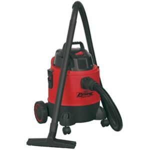 Sealey Vacuum Cleaner Wet & Dry 20L 1250W/230V Features: High powered, lightweight unit with blower facility. Constructed from high-impact plastic, the drum unit is mounted on two castor and two fixed wheels. Tool storage points on head and base. Supplied with 4m cable with 3-pin plug, tool kit, cartridge filter and wet-use foam filter. Technical Details: • High powered, lightweight unit with blower facility. • Powerful 1250W motor head gives incredible suction through Ø35mm hosing. • Constructed from high-impact plastic, the drum unit is mounted on two castor and two fixed wheels. • Tool storage points on head and base. • Designed for use with cartridge filter or dust collection bag (optional) for fast and clean disposal of waste. • Supplied with cartridge filter and wet-use foam filter. • Model No. PC200 • Model No. PC200 Additional Information: • High powered, lightweight unit with blower facility. • Powerful 1250W motor head gives incredible suction through Ø35mm hosing. •