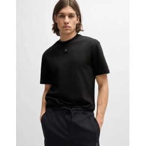 HUGO Dalile Mens T-Shirt in Black 002A signature T-shirt in a straight fit by HUGO Menswear. Featuring a metal stacked logo, this top is crafted in interlock cotton for comfort. Regular fit Crew neck Short sleeves 100% Cotton, Collar: 95% Cotton, 5% Elastane 50505201