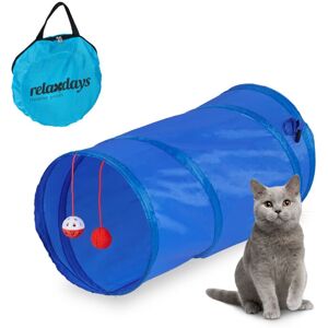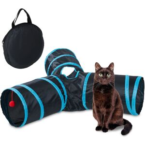 This collapsible cat tunnel is the perfect place for your cat to play, hide and seek and more. The little bell and pom-pom provide extra activity for playful paws. This interactive cat toy is a fun way to promote your cat's well-being. Thanks to the pop-up function, the cat tube can be set up in a flash and taken anywhere in the carry bag. The easy-care material can be wiped clean with a damp cloth. Cat Tunnel in Detail - Overall dimensions W x D: approx. 48 x 26 cm - Folding size in bag H x D: approx. 3 x 30 cm - Diameter of bobble: approx. 3 cm - Diameter of bell: approx. 4 cm - Weight: approx. 150 g - Material: Polyester, steel, PP - In various colours Foldable Cat Tube with Toy - Ideal for playing, crawling or as a retreat - Includes bobble and bell - more fun for cats - Improves the well-being of your velvet paw - Activity and entertainment for cats of all ages - Tunnel can be set up quickly thanks to the pop-up function - With bag for storage and perfect to take with you
