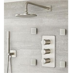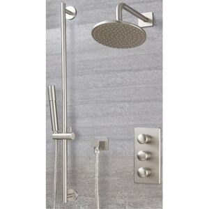 Featuring a stunning brushed nickel finish the modern premium quality solid brass Milano Ashurst riser rail and hand shower kit will add a touch of style and elegance to your bathroom décor. The attractive pencil hand shower with its concealed nozzles delivers a refreshing spray of water that is soothing and the height adjustment on the riser rail means that users of any size can enjoy their shower just the way they like it. - Solid brass construction with brushed nickel finish - Modern design to create a contemporary look - Height adjustment for perfect positioning of the hand shower - Soothing water coverage for a refreshing shower experience - Includes a hand shower 1.5m hose and outlet elbow - Compatible with all types of plumbing systems - Fitted with a 1/2” inlet connection - Minimum recommended pressure: 0.5 bar - This product is covered for 10 years