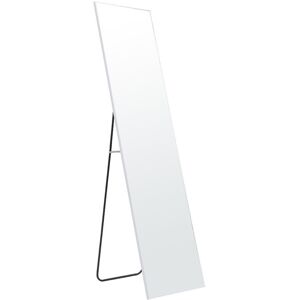This is a silver and white framed floor dressing mirror, both decorative and practical, suitable for home bedroom, clothing store or teenage girl's room. The mirror is made of metal frame with high quality glass, durable and clear image. It supports both floor placement and wall mounting, equipped with 2 expansion screws for flexible and easy installation. The simple silver-white design with box shape is stylish and versatile, and can add elegance to any space. 17 Stories