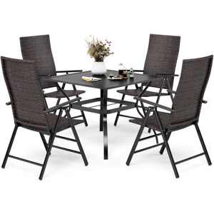 This garden furniture sets 4 seater is perfect suitable for family use,the garden table and chiars are easy to move and clean.The patio table and chairs are made of powder coated metal.They are all maintenance free.Just wipe with a damp cloth. Rattan Dining Chairs :These chairs combine steel frame with rattan.PE Rattan is stable and smooth.Steel Frame is power coated and rust-proof.Cushions are included. Metal Dining Table:The table is made of steel with rust-proof e-coating.Maintenance-free and easy to clean.The hole in the middle of the table top keeps your parasol in place. Dimension:Armchairs (66×66.5×88.5cm),Cushion(50 x 50 x 5cm),Table(94x 94 x 71cm) Ideal for garden,balcony and yards:This outdoor furniture sets are perfect for your garden to enjoy dinner with your family,enough space for 4 person. This product come as 3 packages.Easy assmbly needed.
