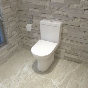 GENERAL DESCRIPTION This toilet features a sturdy porcelain body with a smooth, easy-to-clean surface. It includes a soft close toilet seat and a double flush system that conserves water. TECHNICAL SPECIFICATIONS Product size: Width: 375mm, Depth: 600mm, Height: 790mm (pan: 400mm) Product weight: 32.5kg Colour: white Trap style: P-trap WRAS / CE Approved Includes: Toilet Pan, Soft Close Seat, Fitting Kit, Cistern Fired at over 1200°C Water absorption rate: less than 0.5% Double Flush: 4-liter and 6-liter options Resistant to chemicals OTHER INFORMATION The soft close feature prevents noise and potential damage to the pan. The durable hinges ensure long-lasting use.
