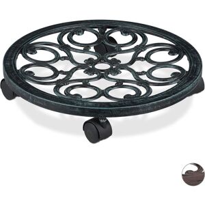 With this round plant saucer, you can easily move your green to and fro. The plant caddy is made of powder-coated aluminium and can thus be used outdoors as well. However, this lovely piece also makes for quite the eye-catcher indoors thanks to its many ornaments. 4 Plastic casters ensure firm footing and also make transport easy as can be. Plant Roller Details - Size H x D approx. 7.5 x 38 cm - Weight: approx. 1 kg - Max. capacity: 25 kg - Material: Aluminium (powder-coated), plastic - Various colours available Round Caddy for Flower Pots - Facilitates transporting potted plants - 4 Plastic casters for easy movement - For pots with max. 40 cm diameter - Antique design with decorative ornaments - For indoors and outdoors Included in Delivery - 1 x Plant Caddy in Assorted Colours - Decorative items are not included