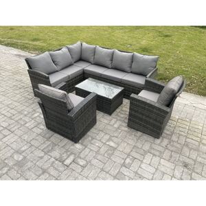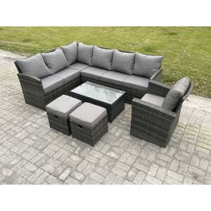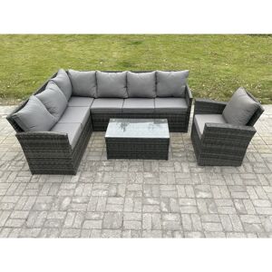 This 8 seater rattan outdoor furniture set is a great addition to patio or garden, made of high quality PE rattan and durable galvanized steel construction for sturdiness and long lasting.Durability,and this garden furniture set can be put Outdoor all year round. Set dimensions: • 2 x Small footstools dimension:40L x 40W x 34H cm(Fully Assembled) • 1 x 3 Seater sofa with double armrest: 162L x 67W x 79H cm(Fully Assembled) • 1 x 3 Seater sofa with single armrest: 157L x 67W x 79H cm (Semi-Assembled) • 1 x Rectangular Coffee Table : 85L x 50W x 37H cm • Dark grey mixed rattan with dark grey fabric .Color may vary due to light or monitor .we are unable to return the item due to this problem .Please consult us before purchase if you have requirements on color saturation • Items Comes flat pack ,self assembled is necessary .Sturdy Galvanized Steel Tube Metal Frames With Powder Coating To Prevent The Rust. • Low Maintenance ,Removable Cushion Cover And Easy Move to Different Place.Pls Keep