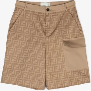 Fendi embody high quality craftsmanship designs with refined elegance. These boys trench shorts amplify the luxury Italian label's preference for sleek, uncomplicated fashion. Envisioned in beige stretch gabardine Bermudas. They come with side pockets featuring Fendi embroidery and tone-on-tone all-over FF logo detail. • Made In Italy• External Fabric: 97% Cotton, 3% Elastane, 97%Cotton, 3% Elastane, Lining: 100% Viscose