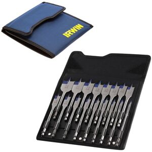 The IRWIN® Blue Groove 4X Flat Bits have a patented groove point and cutting edge, designed to cut and not scrape the timber. They are 4 times faster than standard flat bits. The parabolic scoop optimises control and removal of wood chips. Increased relief angle from 12° to 17°. The shank is 152mm in length and 10% larger in diameter for added durability. This IRWIN® Blue Groove 4X Wood Flat Bit Set is supplied in a branded nylon case. Contains the following: Sizes (Ø): 6, 8, 10, 12, 13, 14, 16, 18, 19, 20, 22, 24, 25, 28, 32, 35 and 38mm.