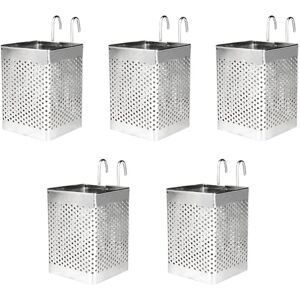 This item is a hanging chopstick drying rack, made of stainless steel, lightweight and easy to organize, for long-lasting use. Well-designed, without rough or sharp edges. Hollow and ventilated, the tableware can dry faster. It can be used to store chopsticks, forks, cooking utensils, brush holders, etc. in the kitchen. A good helper in the kitchen. Made of high quality stainless steel chopstick holder, corrosion resistant. Hooks on the back can attach to most dish racks. Perfect for organizing kitchen utensils such as spoons, forks, knives, chopsticks. Dense holes in the bottom and sides designed for excellent water drainage. Color: silver Material: stainless steel Size: 7.3 x 7.3 x 10.5 cm (single compartment) Package Contents: 5 * Kitchen Shelf Only the above package content, other products are not included. Note: Light reflection and different displays may cause the color of the item in a little different from the real thing. The measurement allowed error is +/- 1-3 cm.