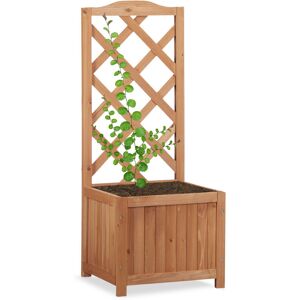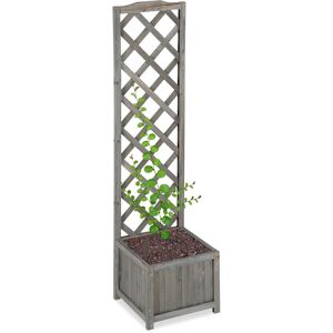 Enrich your garden with this highly decorative planter made of impregnated fir wood. The practical planter with trellis provides stability for plants of all kinds. Create your own flower-studded wall as a decoration, privacy screen or partition. A great addition to your entryway, balcony or terrace. The base is a removable slatted frame. Simply insert one or more flower pots or line it with garden fleece. Climbing roses and clematis alike will quickly take a liking to their new friend and begin to ascend. Please note: To ensure this product’s longevity, annual renewal of the wood preservative is recommended. Planter Box Details - Maximum capacity: 20 kg - Distance to the floor: app. 3 cm - Material: Fir wood - Colour: Wood with flamed look Planter M - Size H x W x D: app. 90 x 36 x 36 cm - Internal box size H x W x D: app. 23.5 x 31.5 x 31.5 cm - Height of trellis: app. 59.5 cm - Weight: app. 2.3 kg Planter L - Size H x W x D: app. 147 x 38 x 38 cm - Internal box size H x W x D: app.