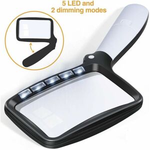 【5 LEDs and 2 dimming modes】: 5 LEDs provide good lighting and a clear view. Switching between bright and soft light can reduce eye strain co.ukom reading at night and protect your eyes. 【Foldable Handle】: The foldable magnifier is not only easy to carry and store, but also can be used vertically and horizontally. 【High Resolution Magnification】: The 3x magnification objective is made of acrylic resin with high resolution, natural magnification and high transparency. Rectangular glasses help you read better. 【Side switch design】: The LED light switch is located on the side of the handle, flush with the handle and more convenient to hold. 【Applicable people and scope】: Suitable for children, the elderly, hobbyists, suffering co.ukom eye aging and macular degeneration, to see the small details of books, newspapers, magazines, cards, recreation and crafts. How to convert the brightness of light? Press the switch to turn the LED on soft light . The second press of the switch changes to