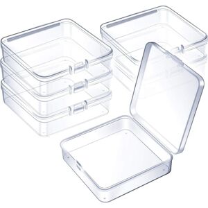 Package includes: 6 pieces of small clear plastic storage containers with lids to help you classify and protect your important items Container dimension: each storage box is approx. 9.4 x 9.4 x 3 cm/ 3.7 x 3.7 x 1.18 inches (LWH) with 1 mm thickness, lightweight, durable and easy to carry Reliable material: these clear container boxes are made of non-toxic polypropylene and non-fragile plastic, strong and durable, and the surface is smooth and tidy, and the contents can be clearly seen in the clear container Safe and useful: this storage box with hinged lid can separate and organize items, make them easy to identify, not only easy to store, but also convenient to see the items stored in the inner box, which is easy to find Bring convenience: you can use it to hold small parts, business cards, jewelry, game pieces, face coverings, hardware, etc., you can also use a pen to mark these boxes with numbers or dates to make your storage more interesting