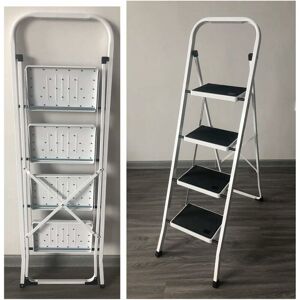 Product description: Package includes: 1x 4 steps ladder Specification: Material:Steel No of step:4 steps Open size:44.5(W)×86(D)×124.5(H)cm Folded size:44.5(W)×4.5(D)×137.5(H)cm Step Size:30×20cm Step rise: 23 cm Tube Size:30×20×0.9mm Net weight: 7.4 kg Max Loading: 150Kg About this item: - Size: 4 step ladder, Open: 44.5(W)×86(D)×124.5(H)cm, Folded: 44.5(W)×4.5(D)×137.5(H)cm . - Folding Design: Foldable compact design, you can save space and store in very little space. Open and close with one hand. - Heavy Duty: Made of the high quality steel. With the wider petal and steel frame, the step ladder is durable and strong enough to support up to 330LBS. - Anti-Slip Design: With rubber Anti-slip feet avoids floors from scratches and offer stability; With gripped tread standing platform offers great support and less pain for your foot and also avoid slipping when stand on it. - Widely Application: It's an ideal tool for your home, shop, garage and office. When you need the extra height