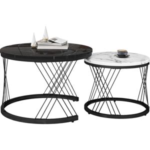 Product Features 1.The tabletop is marble-pattern.Not marble! Not slate! 2.Please wipe with wet cloth or alcohol. 3.Do not set an open flame (such as a candle) on the product! 4.As it is a brand-new product, it will smell the raw materials in a short time. If you don't mind, please leave it in a ventilated place for about a week, and the smell will disappear.Description 5 points ①SET of 2 DESIGN: The coffee table set includes a large coffee table (70*70*45cm) and a small coffee table (45*45*40cm). A small coffee table can be placed under the bigger coffee table. You can combine them as you like.PRACTICAL FURNITURE: This living room side table is ideal for small spaces. It can be used for holding books, magazines, laptops or e-readers. You can also use it as a small coffee table.VERSATILE: Each of the tables has multiple uses. You can place them next to the sofa in the living room or use them as bedside tables in the bedroom.Durable & Stable Structure:The MDF tabletop ensures great