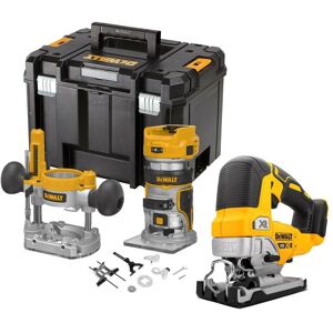 This set includes a Dewalt DCW604NT-XJ is an 18v XR Li-ion Brushless 1/4"" (8mm) Router/Trimmer and a DCS572 Circular Saw Ideal for a wide variety of tasks including routing for inlay cavities and hinge mortises, rounding over edges, flush trimming hardwood edging, and a whole lot more. The precision engineered brushless motor delivers the power to meet the demands of the toughest applications. Featuring dual LED's and clear sub-base ensure maximum visibility to the workpiece. The DCW604 has a variable speed control (16,000 to 27,000/min). This speed control enables the router bit to be optimised for the application. The depth ring and clamping mechanism combine to ensure the motor remains accurate. Supplied with a fixed base, plunge base, T-STAK case, and wrench. Body Only / Naked machine, supplied without batteries or charger. DCW604 Features Variable speed control feature enables bit speed to be optimized for changing applications Soft-starting motor features full-time electronic