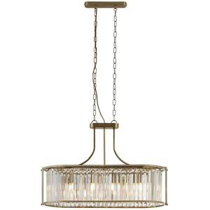 Victoria 5 Light Oval Pendant Antique Brass, Clear Crystal Finish: Black,Light Grey Material: Glass Height: 28.5cm Length: 20cm Width: 20cm Lamp Type: E27 No. of Lamps: 1 Bulb Included: Yes Dimmable: Yes Kelvin: 1800K Lumens: 100lm Weight: 0.15kg Wattage (max): 4W