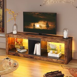 Wanna make your own home/space cool and modern? Choose our led television stand and add fun into life. Put collectibles, family photos, speaker, DVD, books etc on featured glass shelf, then pick up your favorite color with our remote, atmosphere thus effortlessly change. This entertainment center fits up to 65” TV with total weight capacity 200 lbs. Made of CARB certified P2 particle board, it offers you great stability and durability. 5 compartments is enough to store many stuff. Dimension: 55”(L)×13.8”(W)×18.5”(H) (140 x 35 x 47 cm) ( Fits TVs up to 65" diagonal ) Material: CARB P2 Wood + Steel Frame Desktop Load Package Contents: 1* Bestier TV Stand, 1* Manual, 1* Assembly Tools 17 Stories Colour: Brown