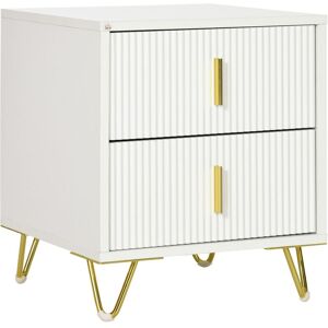 Add a soft touch of elegant texture into the bedroom and beyond, thanks to this HOMCOM dresser. The soft white colour comes with ridged drawer fronts, with gold coloured handles and hairpin legs - this is a beautiful design! With two drawers there's plenty of storage for clothing and more. These white drawers made from a particle board and MDF blend for durability. Specifications: ● Colour: White ● Materials: MDF, Particle Board ● Overall Dimensions: 40W x 40D x 47Hcm ● Drawer Inner Dimensions: 31.1W x 28.5D x 8.1Hcm ● Weight Capacity: 40kg (Total), 30kg (Tabletop), 5kg (Drawer) ● Item Label: 831-641V00WT Features: ● Two drawers: room for plenty of clothing ● Elegant drawer unit: white colour, with ridged front for texture and gold coloured accents ● Sturdy and durable particle board and MDF blend ● Foot pads protect the floor from scratches ● Maximum load 40kg, assembly required