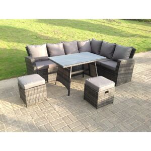 Set Dimensions: 3 Seater sofa with double armrest: 175L x 67W x 79H cmFully Assembled); 3 Seater sofa with single armrest: 170L x 67W x 79H cm (Semi-Assembled); 1 x Table : 140L x 80W x70H cm(Clear Tempered Glass); 3 Small footstools dimension40L x 40W x 34H cmFully Assembled); Dark grey mixed rattan with dark grey fabric .Color may vary due to light or monitor .we are unable to return the item due to this problem .Please consult us before purchasing if you have requirements on color saturation.the product is delivered on pallet,to kerbside only.