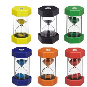 This colourful set of extra-large hourglasses teaches young children to organise their time wisely from an early age. Be it playing, brush their teeth or do their homework for school - the fine silica sand in the glass sets a time frame. With 6 different time spans, the toothbrush timers are suitable for very short or somewhat longer activities between 1 minute and 30 minutes. And if it should take longer, the children's timer can simply turned over again. Note: The hourglass set is not a toy. Hourglass Set in Detail - Dimensions per clock H x W x D: approx. 15.5 x 9 x 8 cm - Running times: approx. 1, 3, 5, 10, 15, 30 min - Weight: approx. 200 g per clock - Material: ABS, acrylic glass, glass, silica sand - Colours: Yellow, black, green, orange, blue, red Colourful Hourglasses for Children - Different time spans for individual use - 6 XXL short time clocks with coloured quartz sand for children - Conveys a sense of time in a playful way - For school, homework, playing or brushing