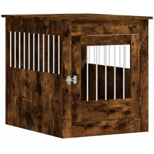 This dog crate furniture, serving as both a dog cage and an end table, makes a practical and eye-catching addition to your living room. Sturdy construction: The doghouse is made of steel wires and engineered wood, ensuring both safety and durability. The engineered wood is of exceptional quality with smooth surface and also features strength, stability and resistance to moisture. 2-in-1 function: This dog kennel perfectly combines style and functions. It not only provides your furry friend with a cosy spot to nap but also doubles as an end table for you to place your favorite decorations. Ventilation design: The steel wire windows allow air to flow properly in the dog cage and prevent bad odours, creating a comfy sleeping environment for your dogs. Lockable door: This dog crate has a latched door for extra safety. Additionally, you can install the door either on the left side or right side based on your own needs. Colour: Smoked oak Material: Engineered wood, steel Overall dimensions: