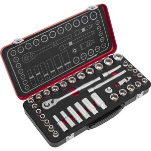 Heavy-duty Chrome Molybdenum 3/4"Sq drive deep impact sockets, 12-point and TRX-Star* female. Suitable for commercial vehicle applications. Supplied in storage case. Features & Benefits: • Heavy-duty Chrome Molybdenum 3/4"Sq drive deep impact sockets, 12-point and TRX-Star* female. • Suitable for commercial vehicle applications. • Sizes: 12-point Sockets; 17, 19mm, TRX-Star* Female Sockets; E18, E20, E22, E24. • Supplied in storage case. • Model No. SX099 Specifications: Model No SX099 Brand: Sealey Contents: 12-point Sockets; 17, 19mm, TRX-Star* Female Sockets; E18, E20, E22, E24 Drive: 3/4"Sq Nett Weight: 3.24kg