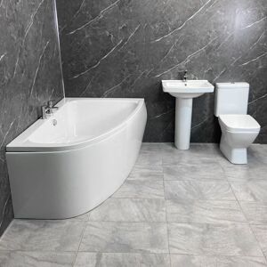 Complete Corner Bath Suite Vercelli Toilet and Basin Inc Xtreme Taps RIGHT HAND Complete bathroom suite, including Cora 1500 x 1000mm offset corner bath with a Styrene front bath panel. With Roca (unbranded) Vercelli toilet & Basin Set. Including Francis Pegler Xtreme basin mono and bath filler tap set with chrome click-clack wastes. Cora Left Hand 1500 x 1000mm White Finish Acrylic Offset Corner Bath RIGHT handed corner bath – please pick correctly for your bathroom 1500mm x 1000mm Includes styrene front bath panel White finish Manufactured from Lucite acrylic sheet as used by the World’s leading bath manufacturer’s Complete with legs and adjustable feet Baths are supplied undrilled for tap holes, these can easily be drilled on site by your plumber Roca Unbranded Vercelli Basin & Close Coupled Toilet Set with Soft Close Seat The Vercelli toilet and basin are manufactured by Roca – but do not have the brand stamped on the product 1 tap hole basin and full pedestal Modern square design