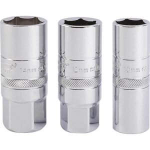 Expert Quality, set of three 6 point Draper Expert HI-TORQ° socket sizes 17, 19 and 21mm. Manufactured from chrome molybdenum. Fitted with internal and external nylon sleeve preventing damage to wheels and nuts when in use. Supplied in plastic storage case. Features and Benefits • Expert Quality • 3x 6 point Draper Expert HI-TORQ® sockets sizes 17, 19 and 21mm • Nylon sleeved prevents damage to alloy rims when used • Supplied in plastic storage case Contents 1 x Long Reach Wheel Nut Socket for Alloy Wheels, 1/2" Sq. Dr. (3 Piece)