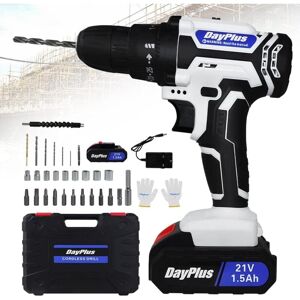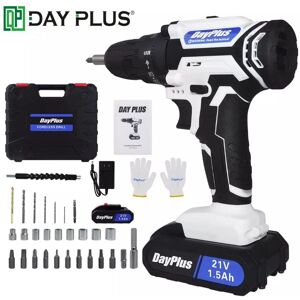 Package Contents: 1 x Cordless Drill 2x 1500mAh Li-ion Batteries 1 x Fast Charger 1 x User Manual 1 x Carry Case Some Accessories (please see the picture) 21VCordless DrillDriver Combi Rechargeable Lithium-Ion 1.5A Screwdriver LED Worklight ,Fast ChargerHeavy Duty Power Tool Set . Features: 2 Speed Transmission for Screw Driving and Drilling -Low speed(gear 1) for great torque, suitable for screwing big bits. -High speed(gear 2) for small torque, appropriate for fast screwing. 25+1 Position with Clutch to Prevent Stripped Screws -25 gear of torque with clutch to protect screws; 1 gear of drill is deal for drilling. -LED indicator shows real-time capacity of power of battery, reminding you of low power and charging. Ergonomic Handle Delivers Comfort and Control -Good vents on the sides that dissipate heat and do not let your hands become sweaty. -Li-Ion Battery more than 300 times Circle life -Our Drill / Driver kit is great for a variety of home projects, with its Lithium-Ion battery,
