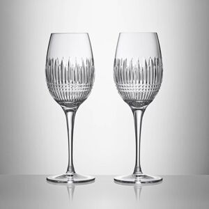 The Lismore Essence Medium crystal wine glass pair is a stunning example of iconic Waterford craftsmanship and brilliant crystal clarity with striking diamond and wedge cuts that catch and reflect the light. Modern drinkware at its finest, the slender, contemporary profile, dainty lip and pulled stem accentuate the bright flavor and crispness of a chilled white wine. Relax with a loved one and experience a few of lifeâs greatest pleasures: warm company, fine wine, and beautiful design imbued with considered curves and precise attention to detail.