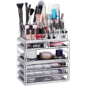 This handy makeup organizer will save you the search for needed items and finally restore order to your place. The three-part makeup stand provides ample storage space with a total of 22 compartments for cosmetics and jewellery. The drawers are suitable for creams, powders and eyeshadow, as well as watches, necklaces and bracelets. The handy lipstick holder can also be used for nail polish, brushes and much more. Create and customize your own makeup kit with this stacking cosmetics stand! Cosmetic Organiser with 6 Drawers Details - H x W x D: approx. 29 x 23.5 x 14 cm - 3-Piece set - 2 Boxes with 3 drawers each - 1 Organiser top with 16 compartments - Weight: approx. 2 kg - Material: Acrylic Cosmetic Organiser Dimensions - 1 x Large drawer: H x W x D: 6 x 21 x 12.5 cm - 3 x Narrow drawer HxWxD: 3 x 21 x 12.5 cm - 2x Small drawers: H x W x D: 3 x 9.5 x 12.5 cm - 1 x Large compartment: H x W x D: 7.5 x 10 x 9 cm - 1 x Narrow compartment: H x W x D: 3 x 10.5 x 3.5 cm - 2 x Medium