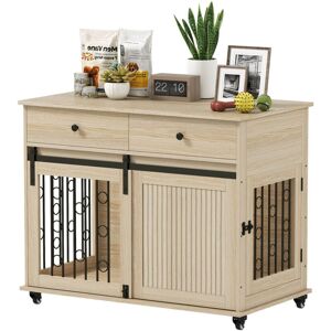 Discover the versatile PawHut Dog Crate Furniture, where functionality meets style! Use it as a cosy dog crate or a chic side table; its particleboard and fine mesh grid design keep your furry friend from chewing. Boasting a dual-door setup, including a stylish barn door, this piece ensures comfort with a three-sided ventilation system and spacious interior for large dogs.- Serves as a dog crate or stylish side table; - Fine mesh construction prevents chewing; - Features barn door and interchangeable latched side door; - Ventilation on three sides prevents feeling confined; - Accommodates large dogs up to 30kg and 60cm long; - Surface cleans easily with just a wipe; - Adjustable feet stabilise on uneven surfaces; - Assembly required;- Colour: Walnut Brown; - Material: Particleboard, Steel; - Overall Dimensions: 98W x 60D x 78Hcm; - Inner Size: 94.5W x 54.5D x 71Hcm; - Front Door: 48.5W x 63.5Hcm; - Side Door: 46.5W x 58Hcm; - Mesh Grid: 1L x 1Wcm; - Feet Height: 5cm; - Maximum Load: 30kg(Inner), 20kg(Top); - Item Label: D02-208V01WN; PawHut Size: 78cm H x 98cm W x 60cm D