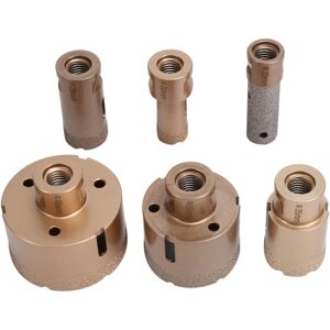 [High-quality material] This set of diamond hole saws is made of high-quality alloy material with diamond frosted, which can meet your work needs. Improve your work efficiency [Product Features] Accurate drilling can be achieved without additional drilling tools. When water needs to be added during long-term work, the bit temperature can be prevented from being too high, the bit can be protected, and the service life of the bit can be prolonged. [Scope of application] It is suitable for all kinds of stone tools, stone materials, including marble and ceramic tiles, etc., and can be used for decorative drilling of industrial buildings and houses. drills can effectively improve work efficiency. [Product adaptation] The product is adapted to M14 thread, drill diameter 20/28/35/55/68mm with 20mm Finger Bits and M14 Adapter Drill. Suitable for most angle grinders. Colour: Gold Material: Diamond Coated, Alloy Package Contents: 5 x Hole opener 1 x 20mm Finger Bits 1 x M14 Adapter Drill Only