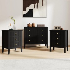 This Black 3 Drawer Chest Of Drawers from the Luna Black Range is a beautiful, contemporary storage piece, ideal for fans of minimalist design and fluted detailing. Made of manufactured wood and metal, this chest comes with 3 large storage drawers. It has a painted black finish on the front and hammered gold metal handles. Ideal storage for a living room, hallway or bedroom space. Due to its modern look, gold details and neutral finish, this chest could blend into contemporary, luxurious or scandi inspired spaces. Part of the Luna Black collection, there is a variety of matching furniture available including a one drawer bedside table and a three drawer bedside table! Part of the Luna Range, there are a variety of matching items available. Would you like to see similar items? Browse our full Luna Furniture category for more ideas.